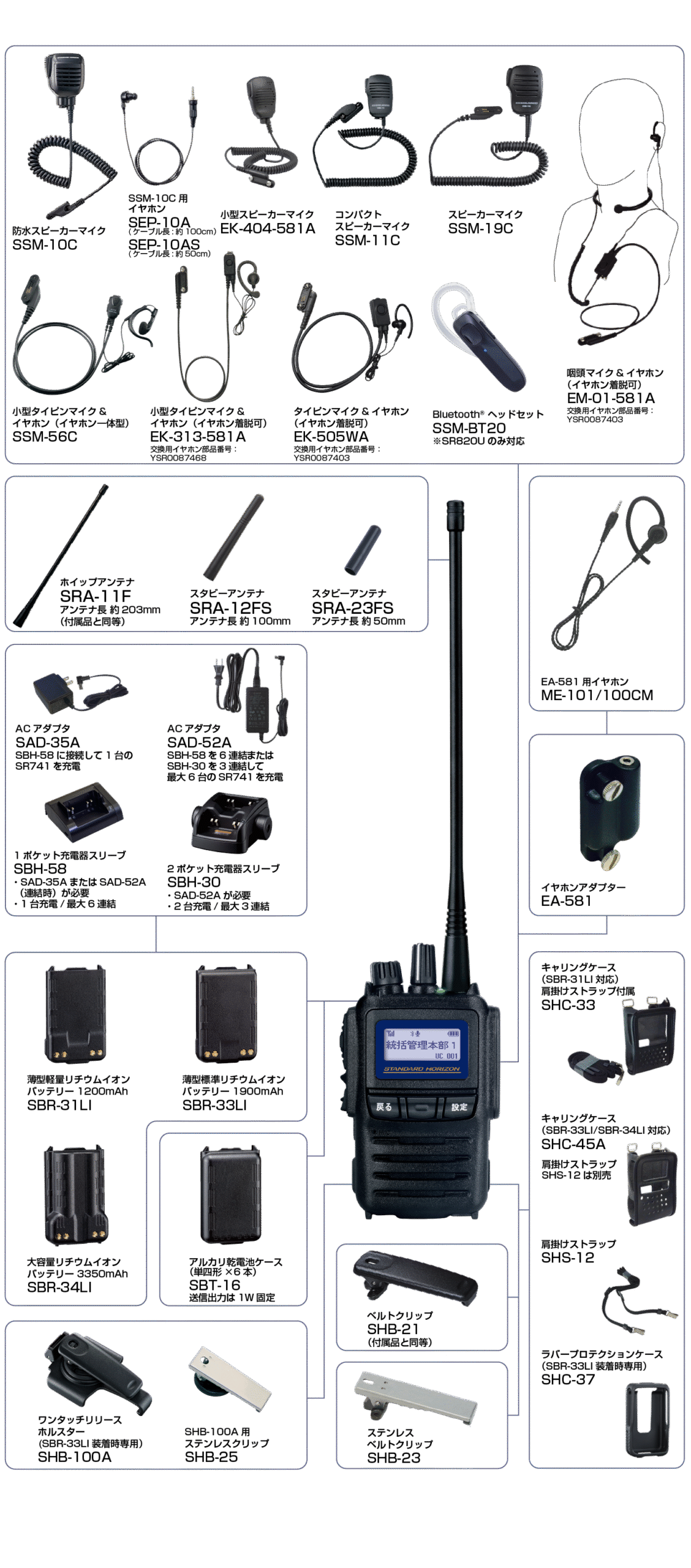 | 重量 | 約248g(SBR-33LI、アンテナ、アクセサリーコネクタ保護カバーを含む) |