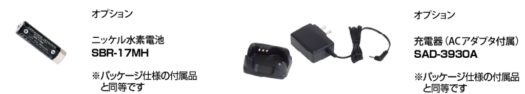 | 送受信周波数 (12.5kHz ステップ) | 01ch~20ch:422.0500MHz~422.300MHz 中継装置使用時 : 01ch~27ch: 送信 440.0250MHz~440.3625MHz 受信 421.5750MHz~421.9125MHz |