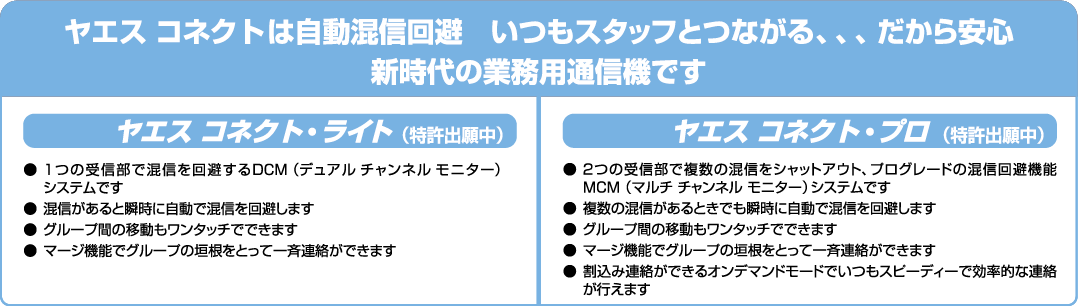 自動混信回避 ヤエス コネクト ライト搭載
