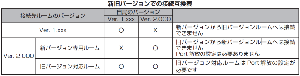 Ver. 2.000 ではPort 開放設定が不要になりましたが、新旧バージョンでルームの互換性が無いため接続